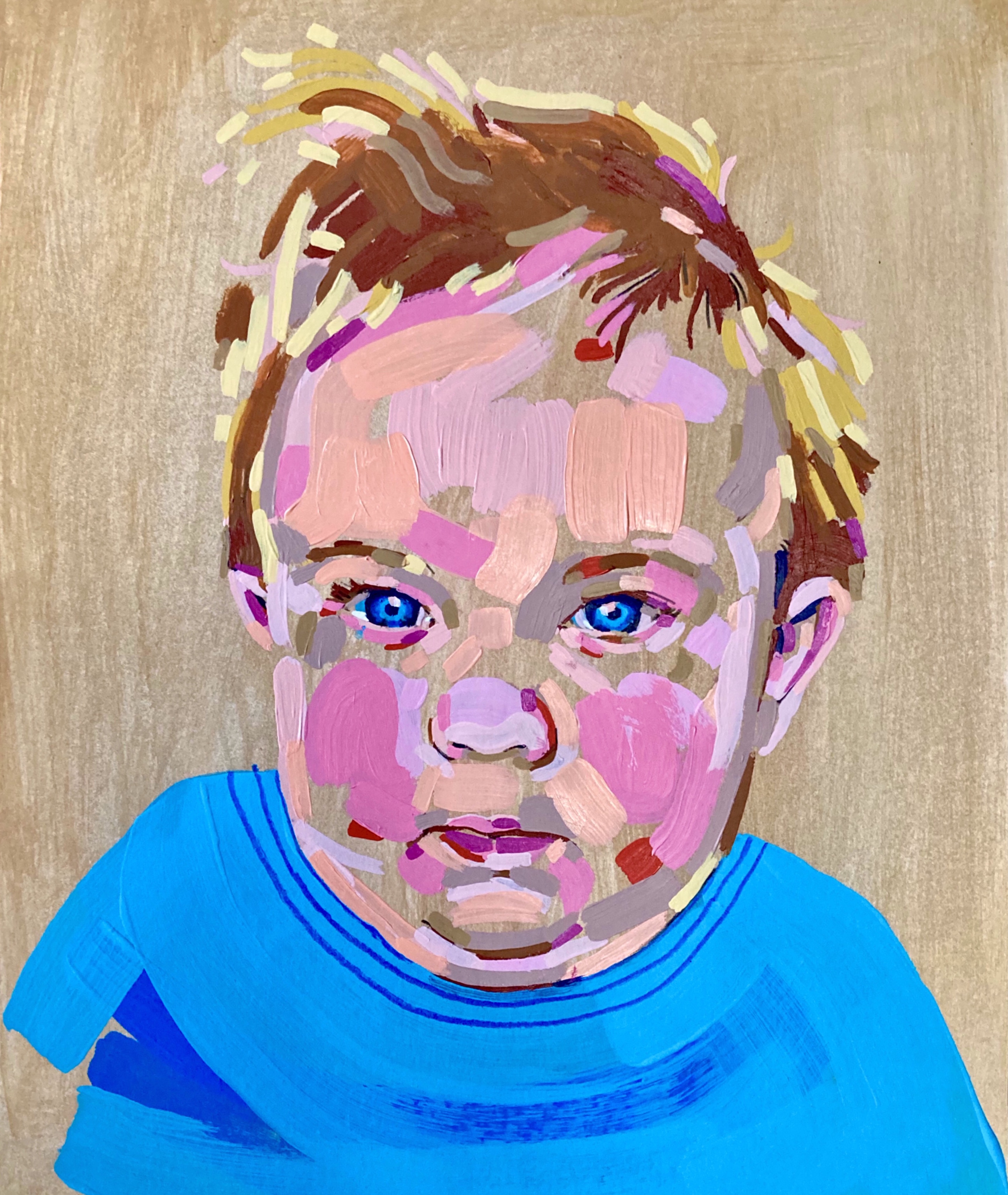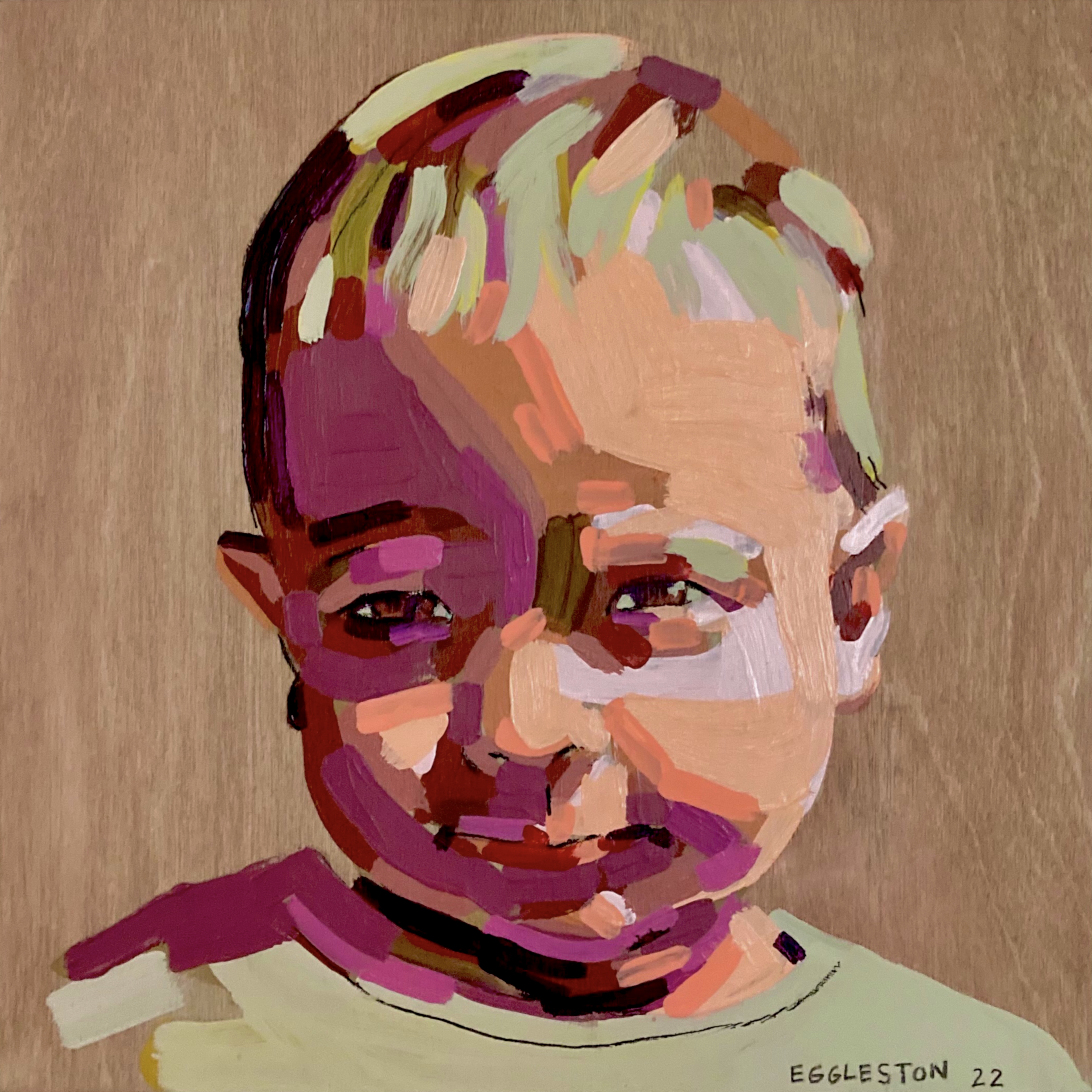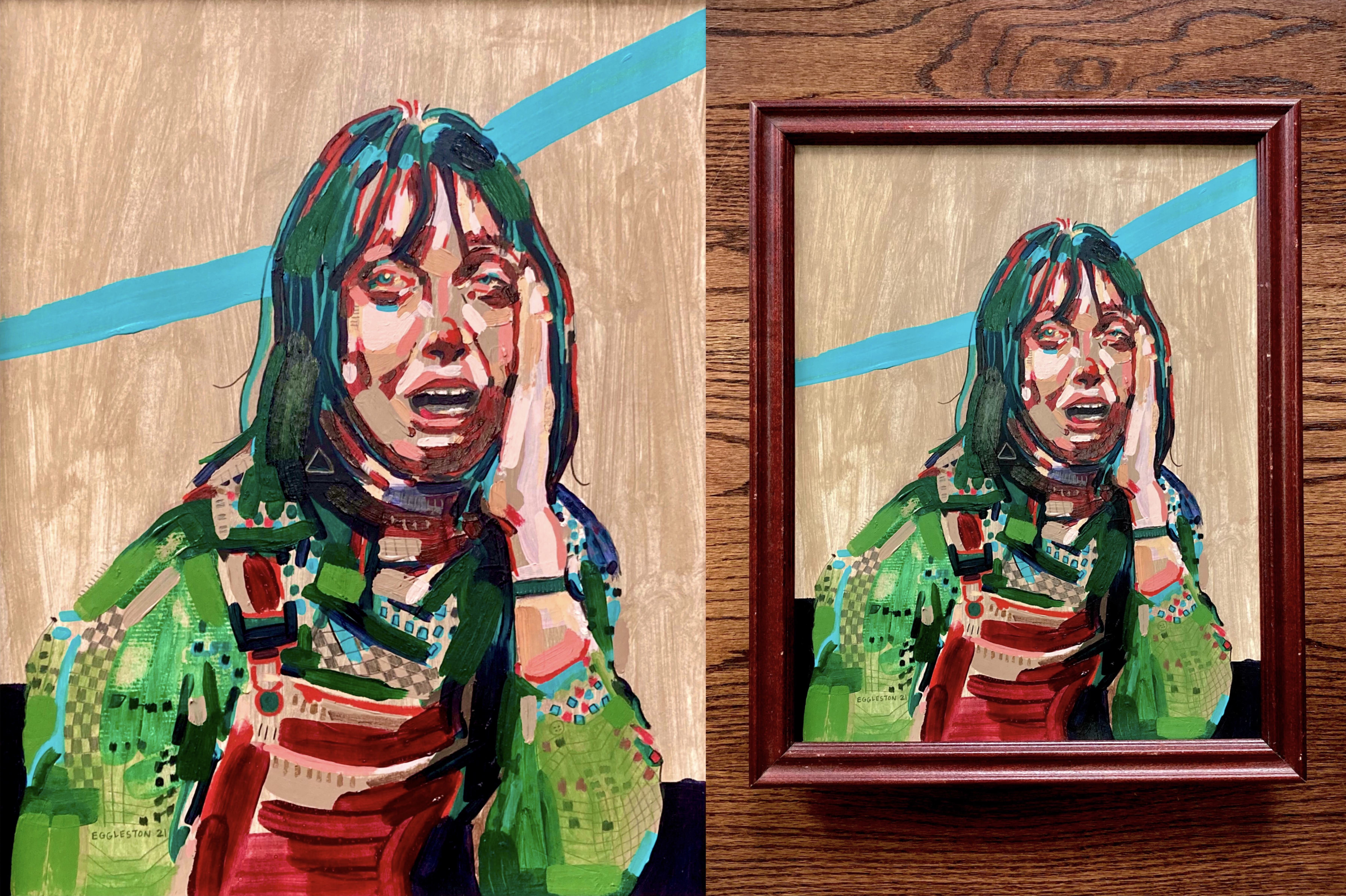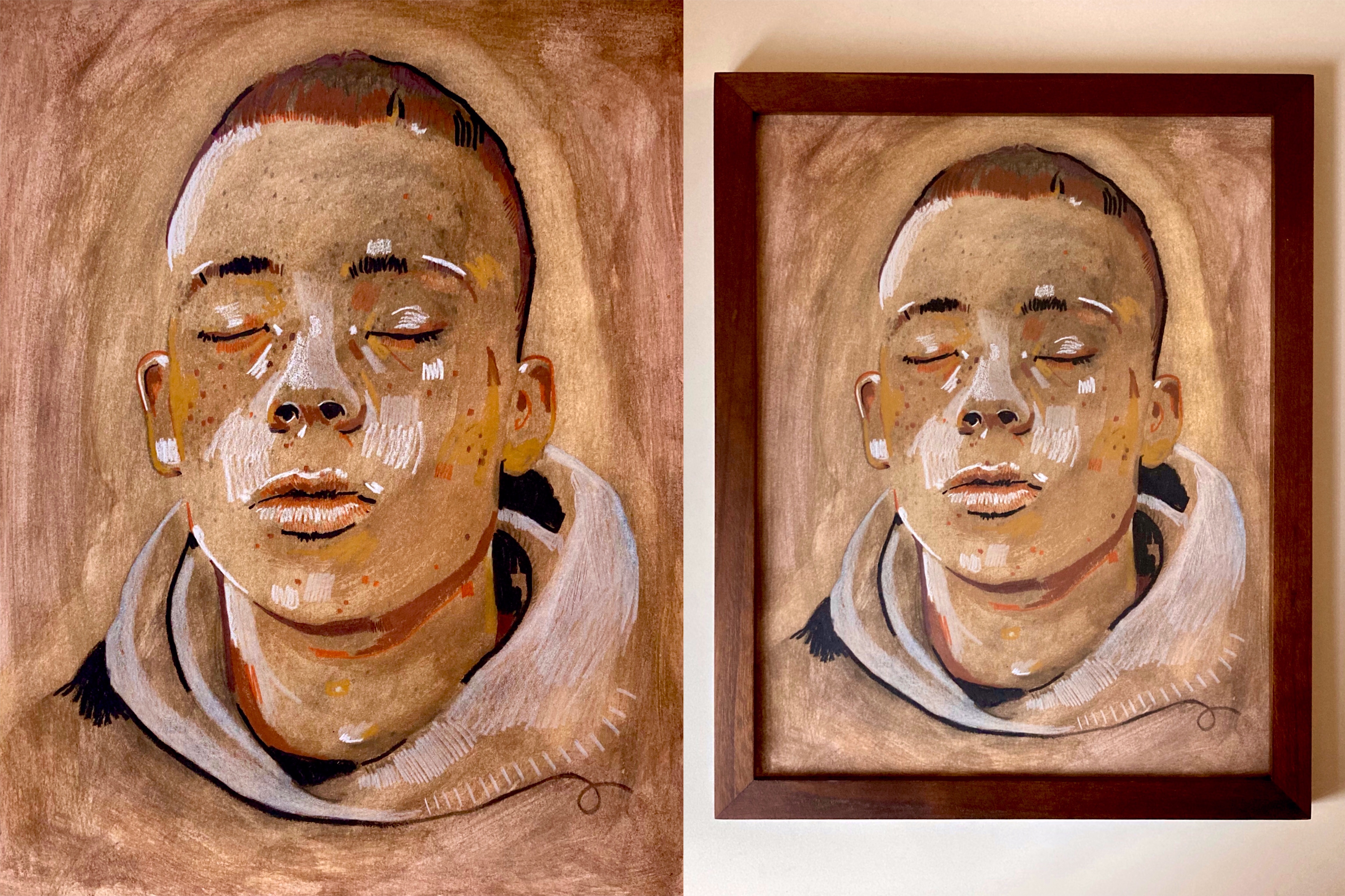 Acrylic paint and charcoal pencil on wood